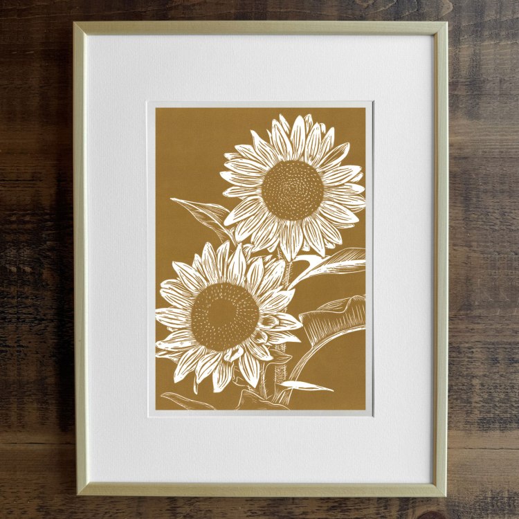 “Golden Sunflowers” Original Open Edition Lino PrintYellow Ochre Ink on PaperFramed size: approx. 14 x 18 inches2024 Framed Edition: £80 Buy Now