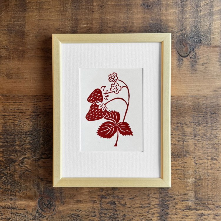 “Strawberries” Original Open Edition Lino PrintRubine Red Ink on PaperFramed size: approx. 6 x 8 inches2025 Framed Edition: £34 Buy Now